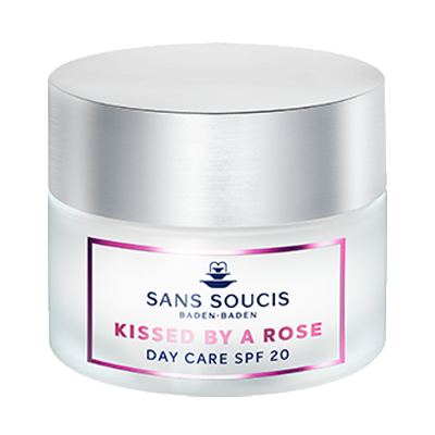 Sans Soucis Kissed by a Rose dagcrème bevat SPF 20 en alpenroosstamcel-extract met 67,1% natuurlijke ingrediënten. O/W emulsie.